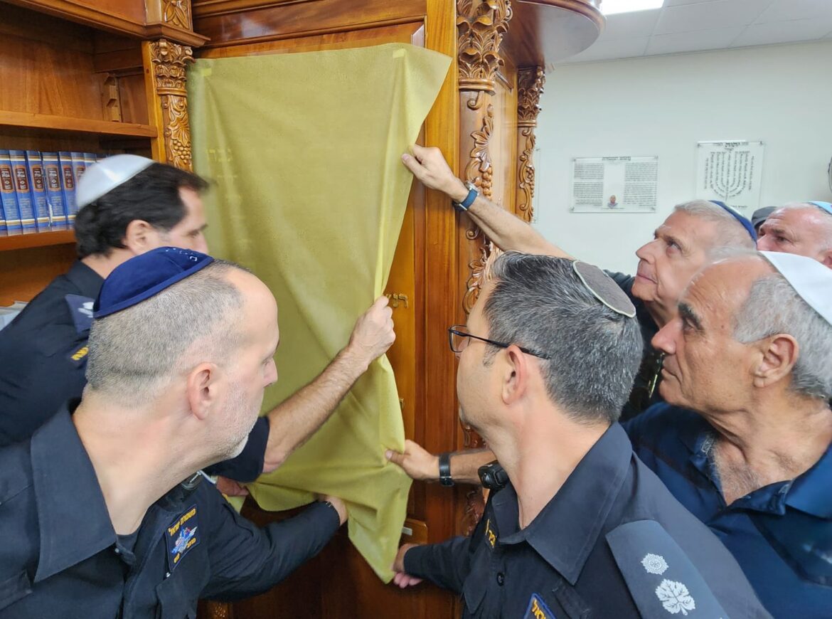 במעמד מפקד מחוז הדרום, ניצב אמיר כהן, יחד עם מפקד מרחב לכיש, נצ״מ רועי ולדמן, מפקד תחנת שדרות, סנ״צ מידד לביא, מפקד תחנת שדרות ב7.10.23, סנ"צ דביר ארובס סגל הפיקוד הבכיר של מחוז הדרום ומשפחות שכולות של השוטרים שנפלו בקרב על תחנת המשטרה בשדרות התקיים מעמד מרגש של חניכת בית הכנסת בתחנת המשטרה החדשה.