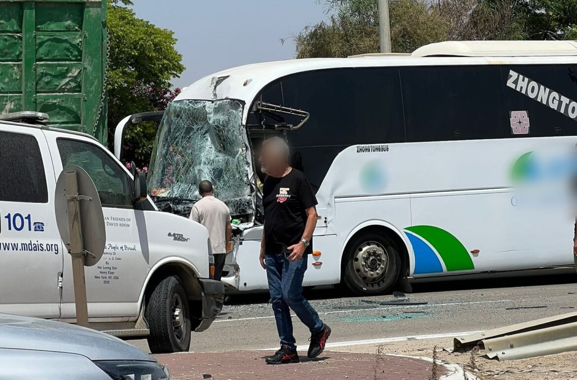 נס גדול בצומת יד מרדכי: תאונת דרכים בין משאית לאוטובוס שהסיע תלמידים הסתיימה עם פציעות קלות של 25 תלמידים ופציעה של נהג האוטובוס שמצבו מוגדר בינוני.