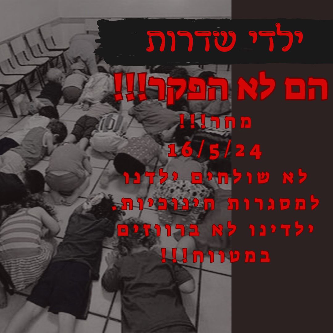 "בימים האחרונים אנחנו מזהים עקביות של ארגוני הטרור בצפון הרצועה לירות לעבר שדרות כדי לשבש את החיים שלנו" אומרים הורים שחשים תסכול גדול, "הבוקר" לטענתם, "אי אפשר עוד להבליג נוכח הבהלה הגדולה שאחזה בילדים. אז נכון, הם נמצאים בבית ספר ממוגן אבל הם לא מרגישים ביטחון כשאבא ואמא לא לידם. זה מצב בלתי נסבל שאסור להסכים לו עוד".