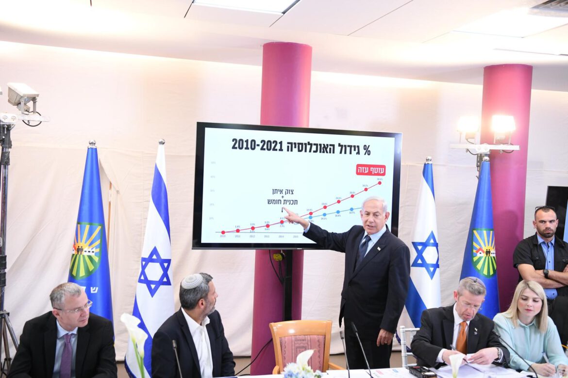"אני רוצה קודם כל להודות לך, ראש העיר והמארח, אלון דוידי, ולראשי הרשויות שנמצאים כאן איתנו, יחד עם השרים והשרות. אנחנו מקיימים היום ישיבת ממשלה מיוחדת בשדרות ומביאים בשורה גדולה לשדרות ולעוטף עזה.