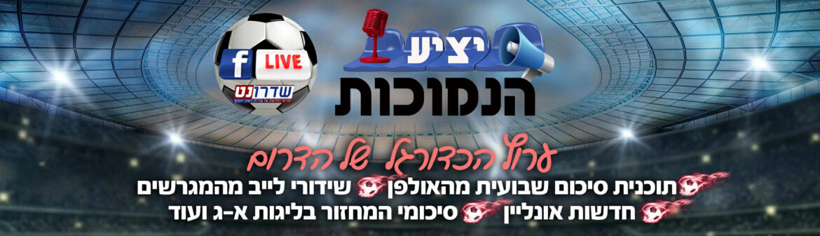 יציע הנמוכות חוזר לעונת 2021-22 by אורי גבאי 18 בספטמבר 2021 written by אורי גבאי 18 בספטמבר 2021 שאלתם, התעניינתם וסיפרתם לנו כמה שהתגעגעתם! אז ביום ראשון יציע הנמוכות – הדף הרשמי, התוכנית המדוברת ביותר בליגה הנמוכות חוזרת ובגדול!!! עם כל הראיונות, הסיפורים, הדרמה והפרשנויות וכמובן קבוצות, שחקנים מאמנים ואוהדים. 0 comment FacebookEmail related posts כדורגל: מ.כ שדרות ניצחה את קרב הצמרת ופתחה... 5 בדצמבר 2025 מ.כ שדרות ניצחה את "הדרבי" בנתיבות 28 בנובמבר 2025 סינדרלה: הערב ההיסטורי של מ.כ שדרות בגביע המדינה 30 באוקטובר 2025 כדורגל: תיקו 0:0 מאכזב לשדרות בקרב הצמרת מול... 20 בספטמבר 2025 אולם ספורט מודרני וחדיש נחנך בשדרות 30 באוגוסט 2025 "אני רוצה לראות שחקנים רעבים שיש להם רק... 30 ביולי 2025 כדורגל: אהוד כחילה חתם כמאמן מ.כ שדרות 8 ביוני 2025 כדורגל | רגע האמת של מ.כ שדרות- להיות... 3 במאי 2025 מ.כ שדרות: מאבק העלייה תם ולא נשלם 10 באפריל 2025 ביזארי: המשחק של מ.כ שדרות הסתיים בדקה ה-18 4 באפריל 2025