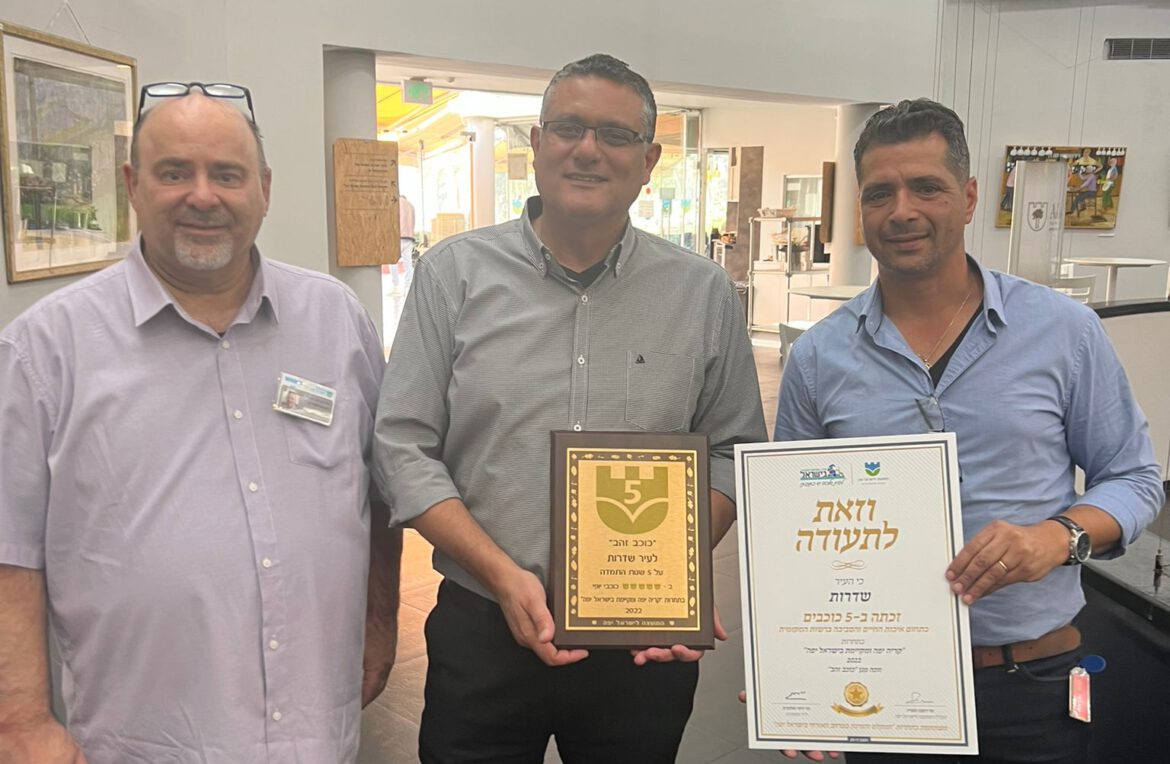 ההשקעה של עיריית שדרות בטיפוח העיר ממשיכה להניב פירות והשבוע קיבלו נציגיה עוד פרס חשוב- מגן הזהב בתחרות 'קריה יפה בישראל יפה', התחרות השנתית לאיכות חיים וסביבה מקיימת של המועצה לישראל יפה, זאת לאור העובדה שבמשך חמש שנים רצופות זכתה שדרות בחמישה כוכבי יופי (2022-2018).