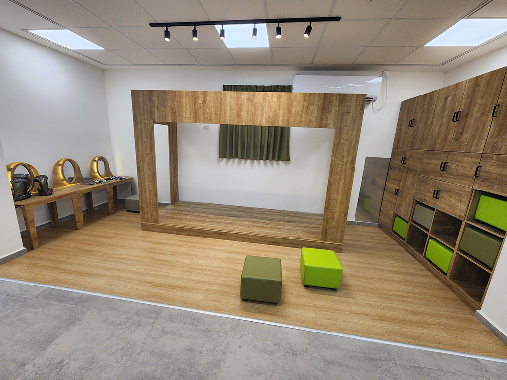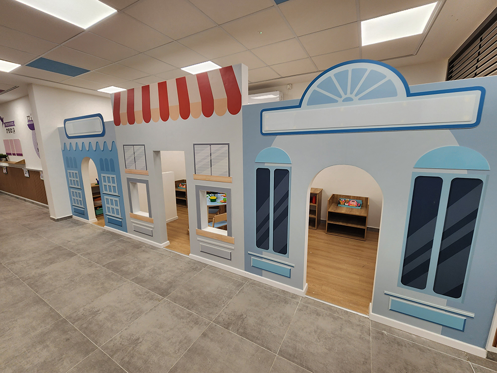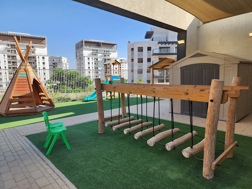 הילדים נחשפים למרחבי פעילות של תנועה, תיאטרון ומרחבי קיימות עירונית. בנוסף ישנו מרחב חוץ משותף בין שני מתחמי הבניין אשר כולל פינה מוזיקלית, פינות ישיבה מעץ, גינת טבע ועוד. כמו כן, ישנם מרחבי פנים משותפים הכוללים מרחב תנועה וג'ימבורי במעון, מתחם תיאטרון, מתחם תנועה, מתחם קיימות וחקר, מתחם יצירה תמידי, מתחם קפה ומאפה- סופר מרקט ומתחם חדר שלווה ורוגע. במרחב המתחם ישנם 3 שדרות מרכזיות מלבד חצר הגן הצמודה לכל כיתת גן או מעון.