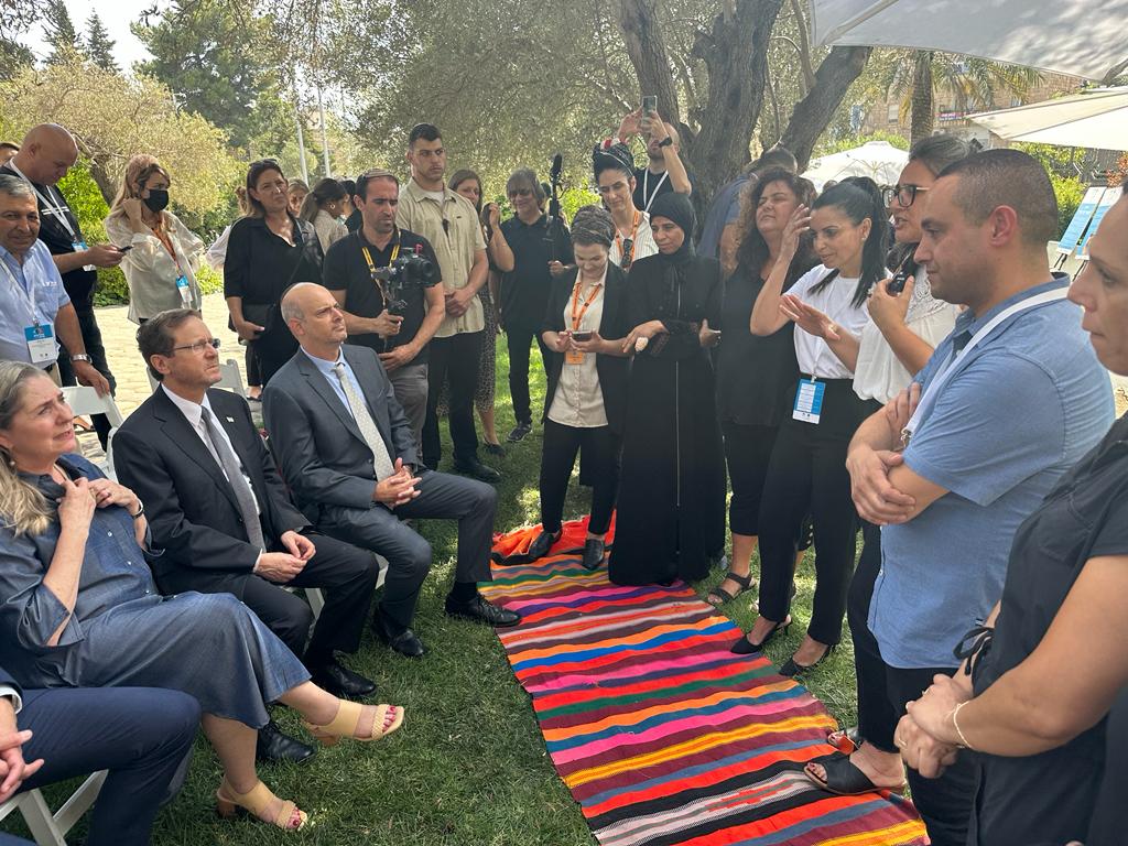 אירוע מרגש התקיים השבוע בבית הנשיא בירושלים: נשיא המדינה, יצחק הרצוג, ורעייתו, מיכל, אירחו את יוזמי ומפיקי ההצגה "האגדה על האישה שרצתה" – הצגה משותפת למתנ"ס שדרות ומתנ"ס רהט שהוצגה על-ידי תיאטרון "עיוני" לפני ארבעה חודשים בבימויה של אילנית סוויסה.