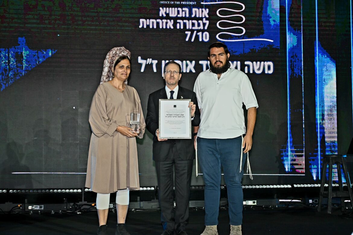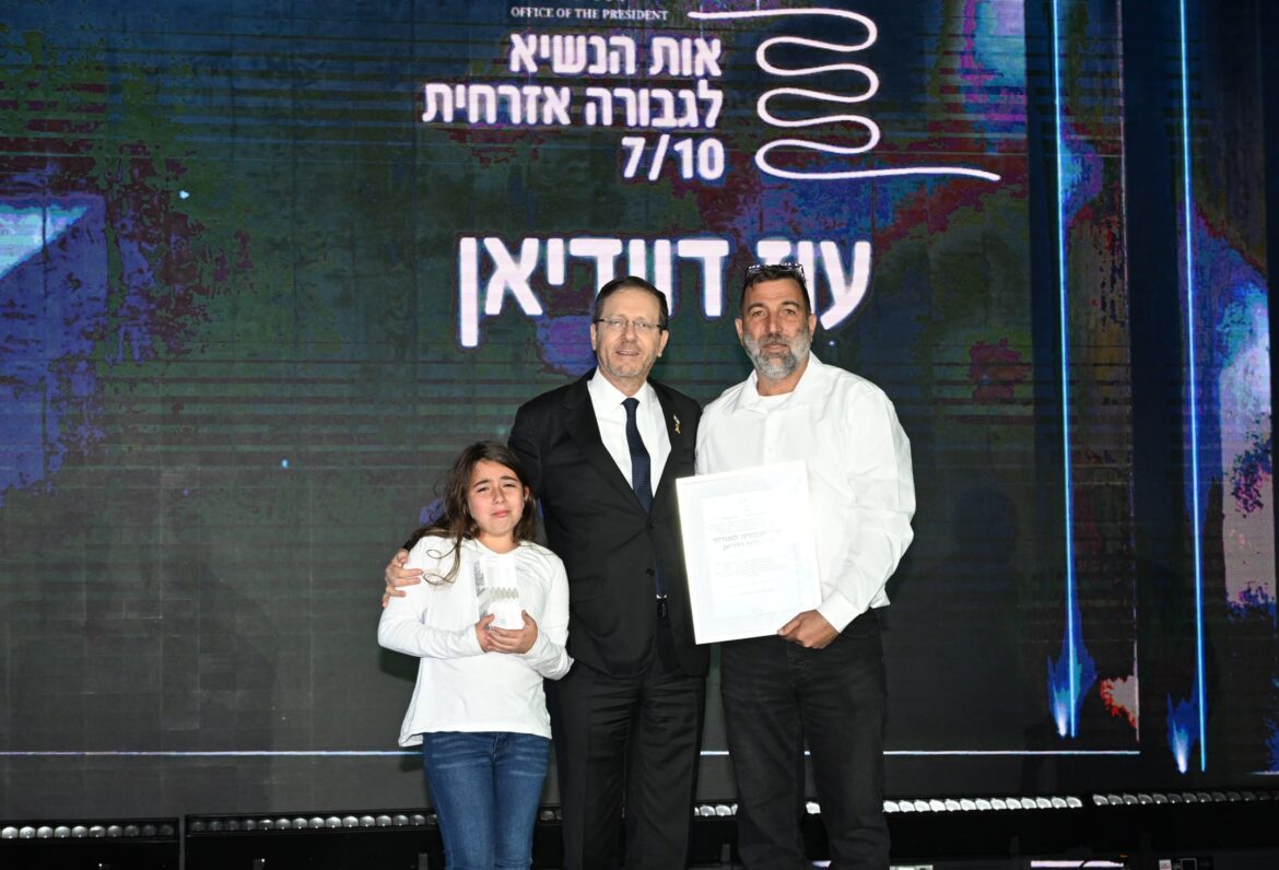 נשיא המדינה יצחק הרצוג העניק הערב, יום רביעי, כ״ח בתשרי, 30 באוקטובר ״אות נשיא המדינה לגבורה אזרחית״, לשורת אזרחיות ואזרחים מן השורה, שפעלו בזמן אמת, תוך סיכון ממשי של חייהם, מתוך תחושה של אחדות גורלוערבות הדדית ישראלית, ובמטרה להציל חיי אדם.