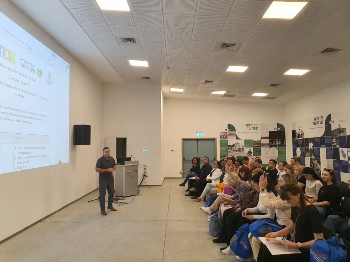 השבוע כאמור הגיעה משלחת נוספת, הפעם של אנשי חינוך ומטפלים פסיכולוגים באוקראינה שהגיעו ללמוד על התוכניות אותן מפעילה מועצה אזורית שער הנגב במסגרת השירות הפסיכולוגי החינוכי של המועצה. עשרות אנשי מקצוע הגיעו ליום מרוכז בשירות הפסיכולוגי החינוכי של שער הנגב ליום למידה אינטנסיבי בנושאי איתנות וחוסן. צוות המועצה סקר להם את התוכניות הרבות שמועצה מפעילה ואת תפיסת החוסן שפותחה בשער הנגב והפכה למפורסמת בקרב בעלי מקצוע ומטפלים בכל העולם.