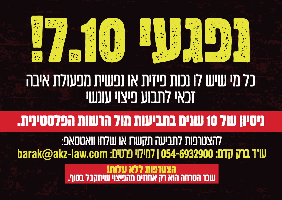 נפגעתם בשבעה באוקטובר? by מערכת שדרונט 15 באפריל 2026 written by מערכת שדרונט 15 באפריל 2026 לפרטים מלאים לחצו 0 comment FacebookEmail related posts בריאה מהבטן- מקום לאישה שאת 28 בפברואר 2026 הגיליון הדיגיטלי של 'דין וחשבון' 1 במאי 2023