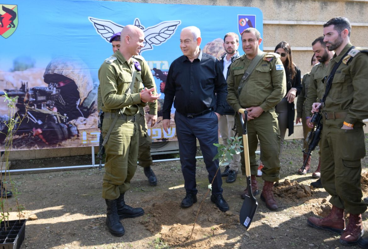 ראש הממשלה נתניהו לחיילים: "כאן, במקום הזה, בשבעה באוקטובר נפלו חיילות וחיילים, טובי בנותינו ובנינו, ה' יקום דמם. והיום אנחנו נוטעים עצים באדמה רוויית הדם והיגון הזאת, עצים חיים לזכרם. החמאס בא לעקור אותנו, אנחנו נעקור אותו. חמאס בא להכחיד אותנו, אנחנו נכחיד אותו. אנחנו נעמיק את שורשינו בארצנו, אנחנו נעקור את אויבינו. אנחנו נהיה כאן, והם לא יהיו שם.