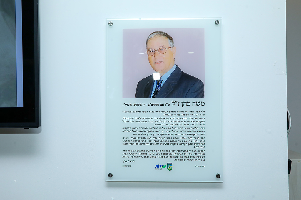 גם בני המשפחה, בהם הבת מיכל והנכדה עדיאל, דיברו, כמובן, על אביהם וסבם והודות רבות לראש העיר, אלון דוידי, לסגניתו, לד"ר אהרל'ה ולכל מי שלקח חלק למען הערב המרגש במתנ"ס, שכעת האולם המרכזי שבו נקרא על שמו של משה כהן ז"ל.
