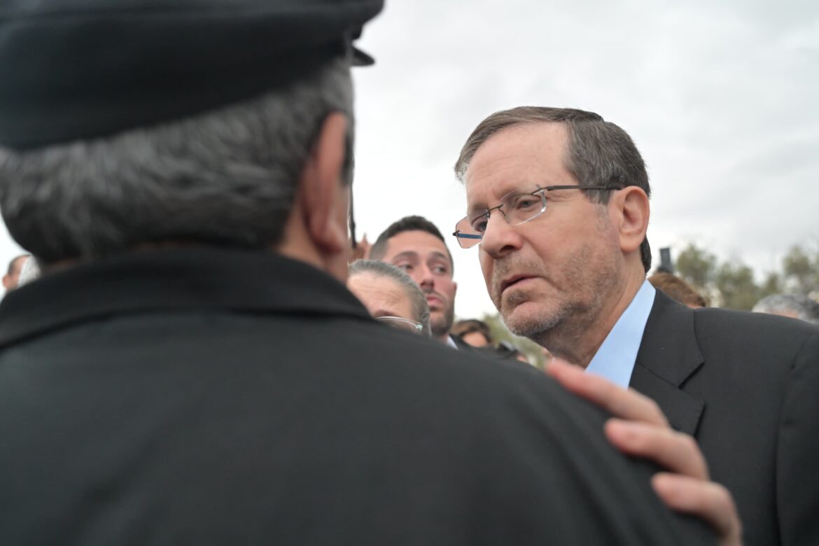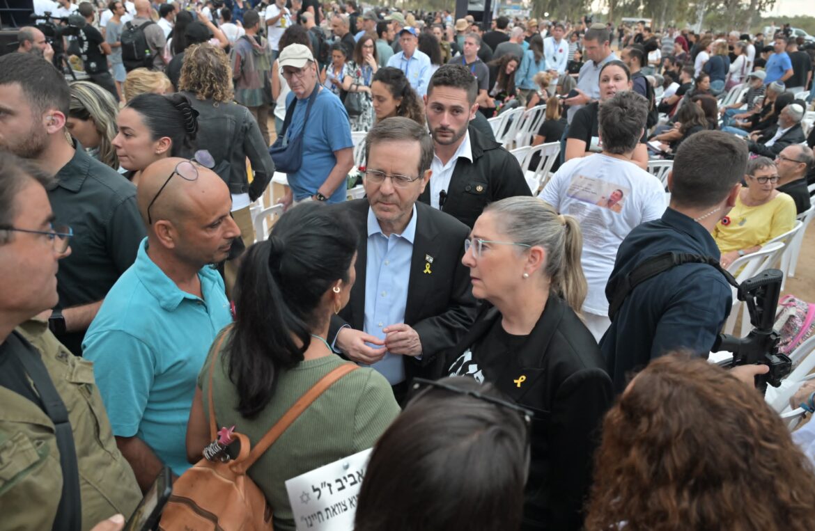 נשיא המדינה יצחק הרצוג החל את מסע הזיכרון ברחבי העוטף, הבוקר, יום שני, ה' בתשרי, ה-7 באוקטובר 2024, ברעים, באתר בו התקיים פסטיבל ה'נובה' לפני כשנה.